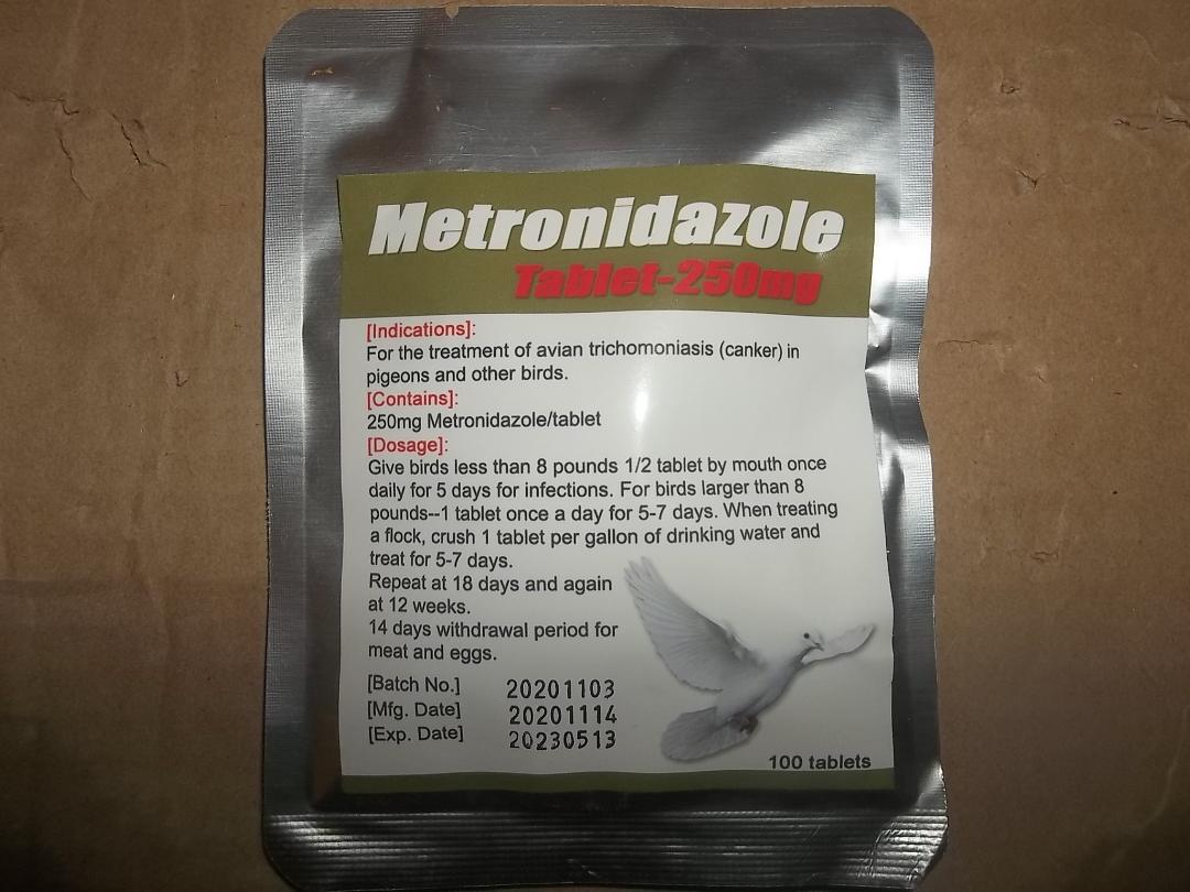 For the treatment of Trichomoniasis (canker) in pigeons and other birds. Dosage for pigeons is 1/4 tablet. If using on birds for purpose4 of meat or eggs, there is a 14 day withdrawal period