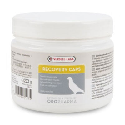 Recovery 350 caps by Oropharma Versele-Laga is a compound specifically designed for total recovery after the flights and diseases. Indications: - Speed up the process of recovery of the organism after flights guaranteeing accurate and rapid recovery - Regenerates the intestinal flora - Regulates bowel function - High in animal proteins - Restores the body's energy reserves. - Regenerates the organism after diseases and antibiotic treatments Composition: - Protiens - Amino acids - Vitamins - Trace elements - Minerals - Pre & Probiotics How to use: - 1 capsule administered directly in the beak.