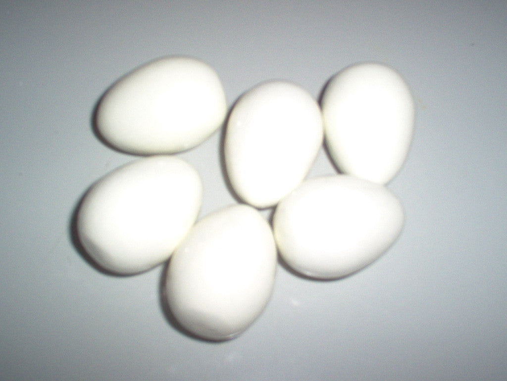 Solid plastic dummy eggs. Lifelike and very good quality. Each order includes 6 individual eggs.